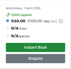 - The user enters their Promo/Corporate Code there so it can be applied to their Instant Book booking.