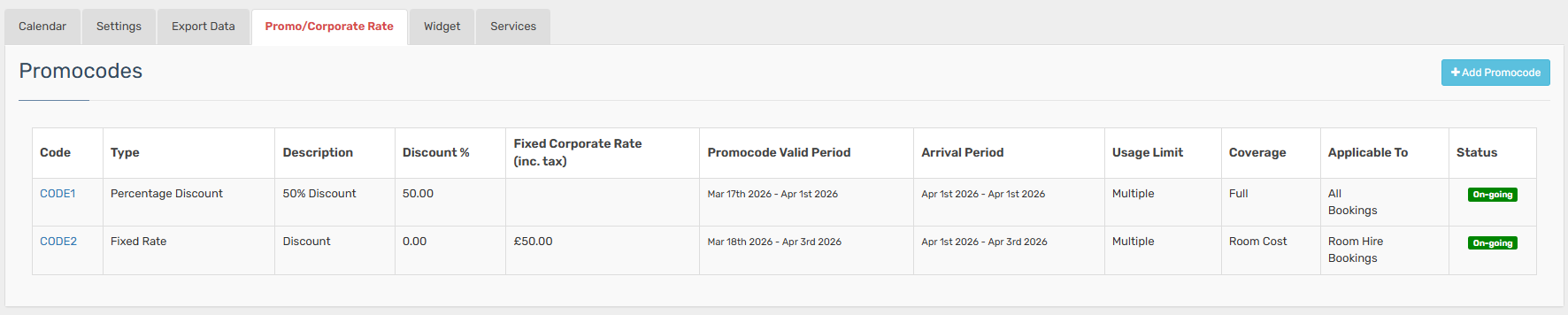- Click Add Promocode.